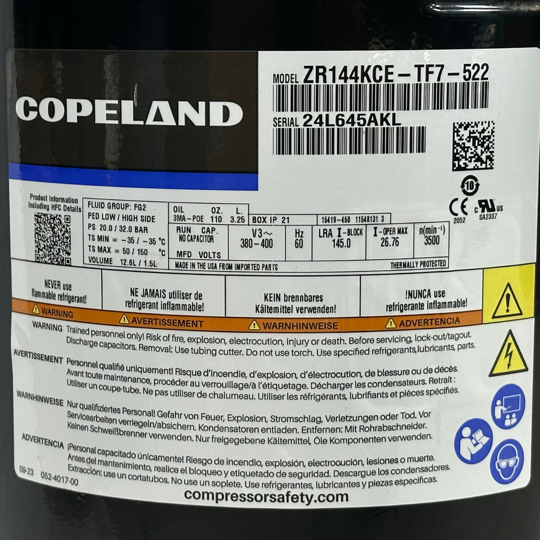 Copeland Compressor ZR144KCE-TF7-522 USA